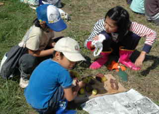 2号緑地は市より借用して緑地景観活動を するものです。 有効に活用しようと、すすき・葛だらけの土地を 前田さん初めボランティアの皆さんが開墾して 子供たちに喜んでもらおうとサツマイモを植えま した。 ありがとうございます。 子供たちの大喜びに、来年はもっと植えようと いう声があがってましたよ!! 焼き芋を食べたお母さんの一言 「すごくほくほくでおいし〜い、今までで最高!!」 |